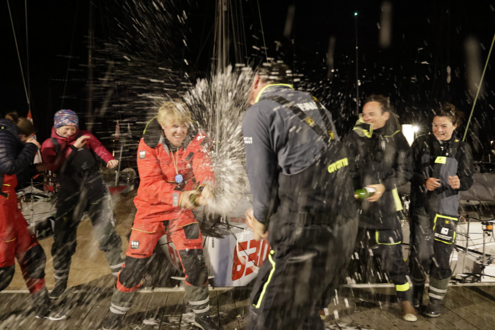 Départager les bateaux de série fut plus délicat encore tant les cinq premiers naviguaient encore à vue dans les derniers milles avant l’arrivée. Pour preuve, Adrien Simon et Chloé Le Bars (1038 – Faun), vainqueurs du premier acte, loupent la deuxième place du classement sur deux courses d’une minute et 12 secondes seulement ! C’est ainsi Yaël Poupon et Théa Kelif (1051 Bihannic – Alentis) qui, après une « manches » de 2 puis de 3, endossent la place de dauphins de Paul Cousin et Marie Zugolaro (981 – Groupe Biocombustibles), leaders au classement des Série. Djemila Tassin et Benoît Hantzberg (992 – Antistene), vainqueurs de la course du jour, terminent finalement quatrièmes. Depuis le début de la nuit, les arrivées continuent de s’enchaîner et devraient se poursuivre jusqu’au petit matin. Dimanche à 11h, les pontons de Lorient La Base seront donc bien remplis à l’heure de la remise des prix !