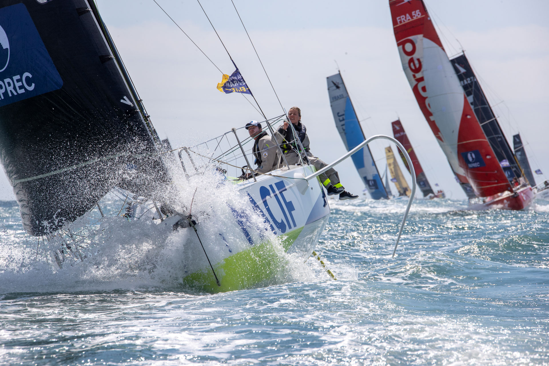 Auteurs du meilleur départ, Basile Bourgnon et Violette Dorange (EDENRED) montent sur la 2e marche du podium. « On a pris un bon départ en milieu de ligne, mais devant tout le monde. On était en tête jusqu’à la première bouée avant de perdre une place au moment de la manœuvre. C’était un tout petit parcours avec trois allers-retours. C’était bien. On avait une bonne vitesse. A une semaine du départ, ça nous permet de voir la quantité de bateaux, d’avoir des repères », relate Violette Dorange. Pour cette dernière, qui est très superstitieuse, la victoire n’était pas une option. « Il ne faut jamais gagner le Prologue, ça porte malheur. Quand tu es devant, tu passes à côté de la ligne. J’ai toujours fait ça sur les manches d’entraînement ». « Il fallait être bons sur les manœuvres. On n’en a loupé une mais on n’a pas fait attention au bateau qui était derrière nous (Skipper Macif), qui est passé. L’important est de se dire qu’on est déjà d’attaque. C’est ce qu’on voulait montrer aujourd’hui et j’espère que c’est ce que l’on va montrer sur le départ de la Transat Paprec », commente de son côté Basile Bourgnon.