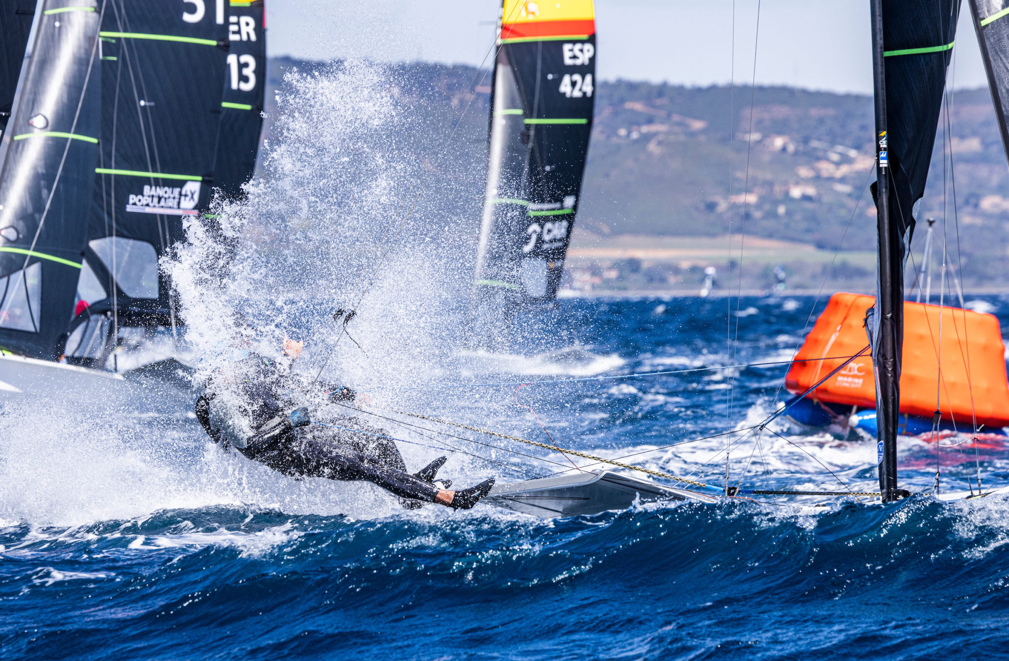 Avec presque 40 nœuds de vent dans les rafales et 20 à 25 nœuds établis, cette deuxième journée de la Semaine Olympique Française de Hyères – TPM a offert un spectacle grandiose sur un plan d’eau des plus agité. Si quasiment toutes les séries ont pu valider de nouvelles courses, les 49er ont pu tirer leurs premiers bords.