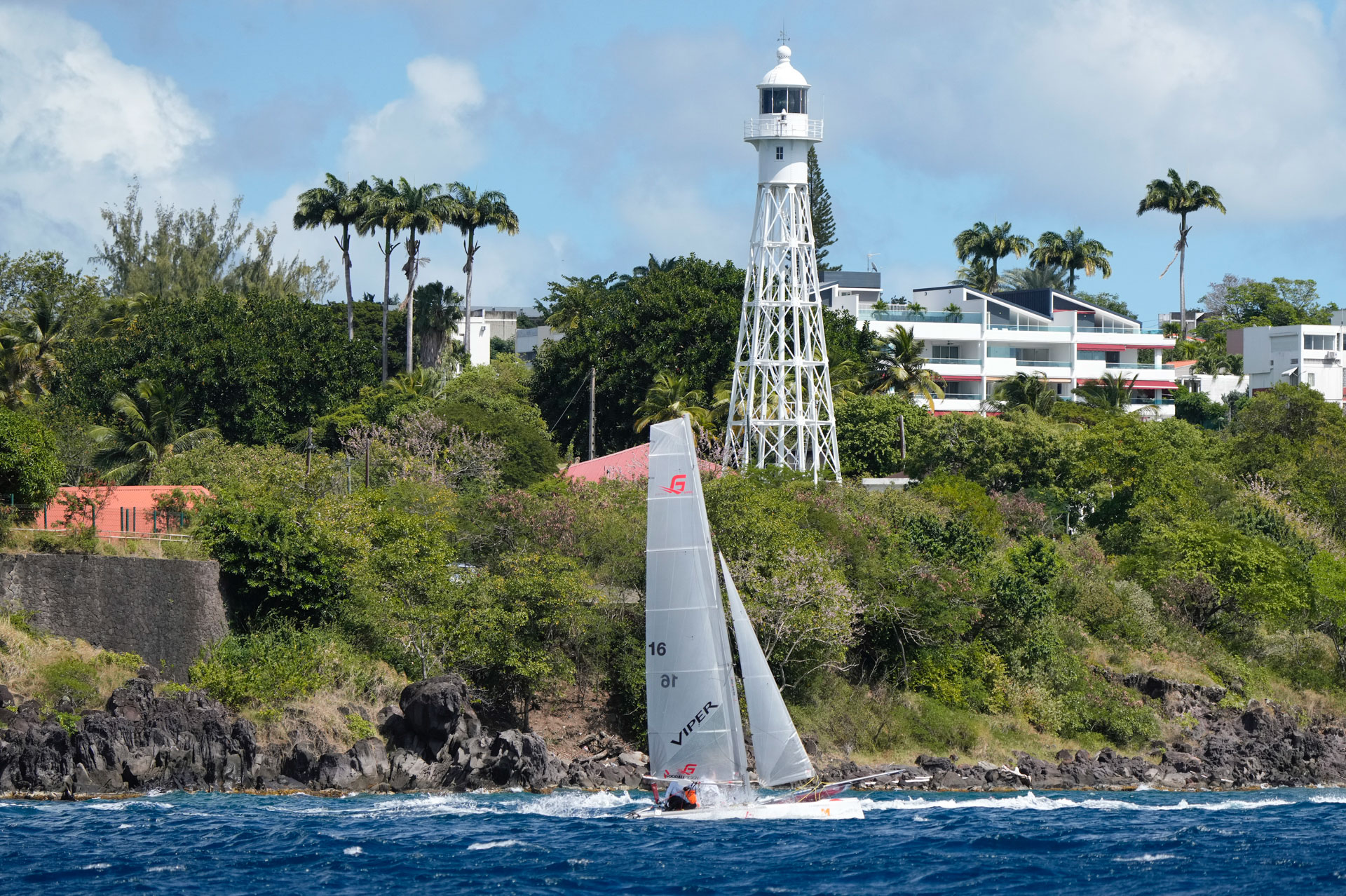 5 jours de navigations parfois sauvages. Ici les petits catas de sport se confrontent à la nature brute. La grande houle venue de l’Atlantique, une mer parfois démontée ou croisée, des alizés possiblement puissants imposent aux équipages technicité et résistance physique sur de longues étapes quotidiennes d’environ 30 milles nautiques. Là, il faut serrer les dents, savoir dépasser ses appréhensions. La résistance n’est pas tout : sous le vent de l’île, si la mer se fait plus clémente, la vigilance reste de mise avec comme atout une parfaite lecture du plan d’e au, impérative pour déjouer les effets de côte car il y en a des pièges sur cette partie du tour. Dévents ou bouffes aussi grosses qu’imprévisibles, courants puissants, le Martinique Cata Raid n’accorde que peu de répit aux marins en lice.