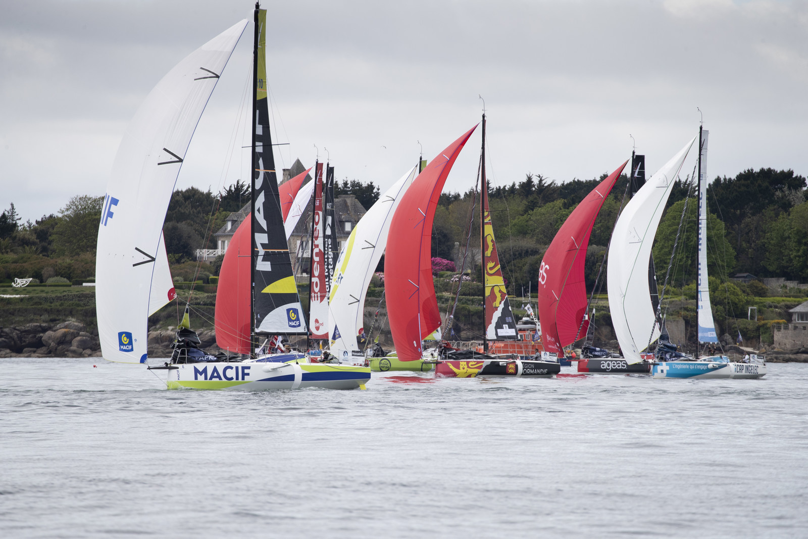 Après dix jours de festivités sur le Village Départ de Concarneau, place à la compétition ! Le coup d’envoi de la 16e édition de la Transat Paprec, unique transatlantique à armes égales, a été donné à 13h02 ce dimanche devant Concarneau dans une petite brise d’Ouest-Sud-Ouest de 6-9 nœuds. Devant les étraves des onze duos 100% mixtes en lice : 3 890 milles entre Concarneau et Saint-Barthélemy (Antilles françaises) via un waypoint situé à quelques milles au nord de La Palma (Canaries, Espagne).