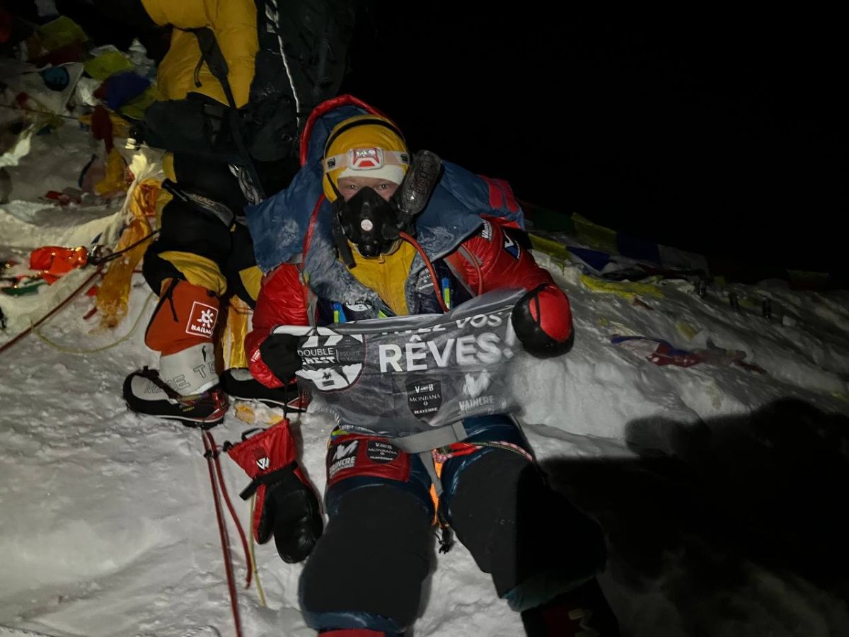 « Je suis très fier d’avoir accompli mon Double Everest, mon rêve pour Vaincre la mucoviscidose et pour démontrer que tout est possible dans la vie. C’est fait ! J’ai bouclé un Vendée Globe et j’ai gravi l’Everest. C’est beaucoup de bonheur et de sensations positives. Je suis plus fatigué qu’à l’arrivée d’un Vendée Globe car cette ascension a été très intense sur un temps court. Quand je suis arrivé au sommet, je me suis mis à regarder les étoiles et je me suis dit que jamais je ne les verrais d’aussi proches. J’ai eu une grosse émotion quand j’ai vu le sommet apparaître. Nous sommes arrivés de nuit au sommet. Tu ne vois rien à part un point blanc ! C’était une succession de plein de petits sommets. Tu montes, tu vois un truc et à un moment donné tu reconnais les drapeaux. Un grand moment ! Nous avons eu un vent énorme avec un froid totalement dingue. Quelles émotions ! Après le sommet, c’était le chao total avec un vent violent. Nous étions alors très pressés de redescendre parce que là-haut, on ne tient pas, on reste congelé. Ma bouteille d’oxygène était quasiment vide. Je n’en avais pas de rechange. Nous n’avions pas de temps à perdre.
