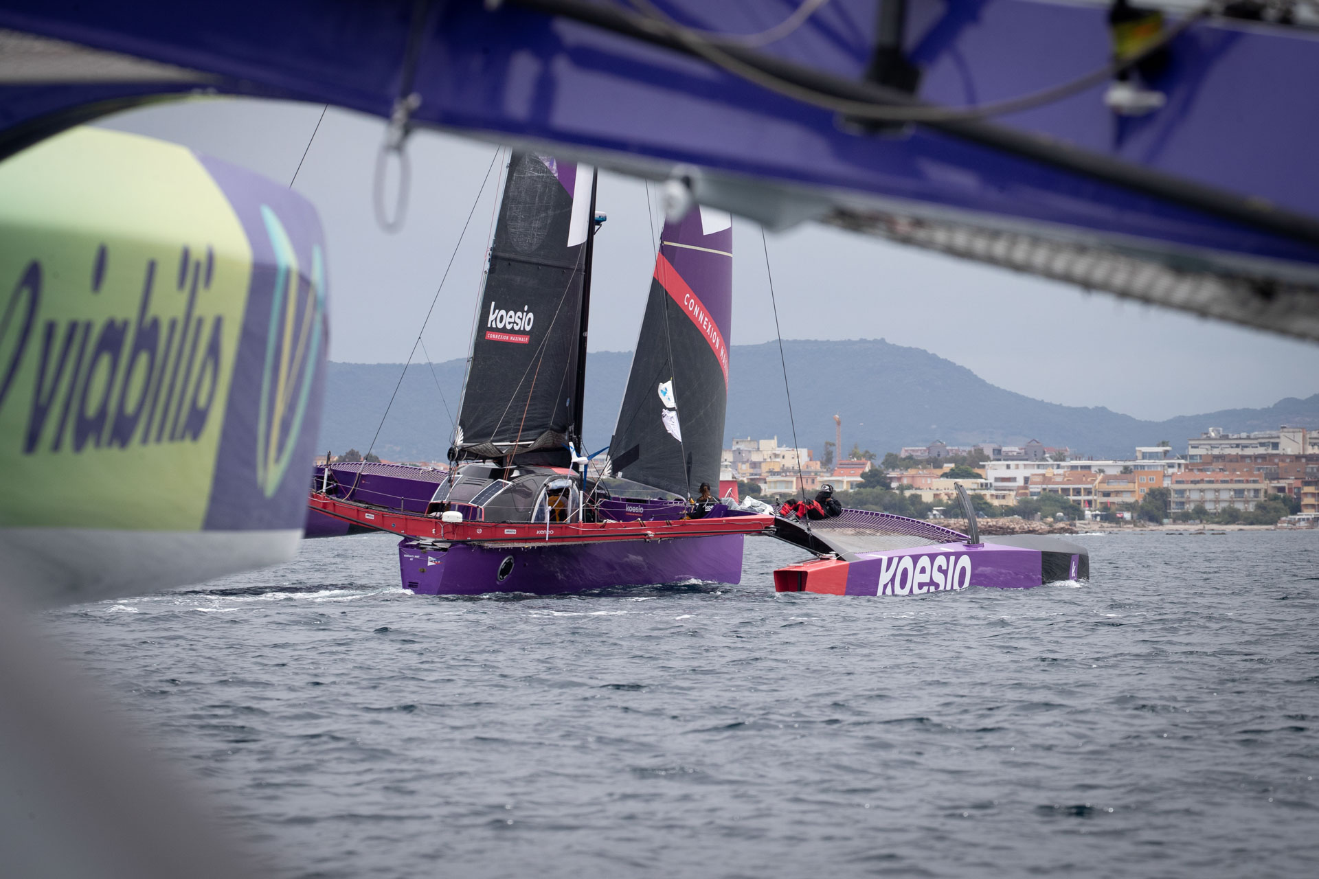 Alghero, Sardaigne… Un petit port sublime qui a accueilli à bras ouverts les 5 équipages du Pro Sailing Tour. De quoi naviguer dans la baie avec des invités et se gorger de sommeil avant de prendre le départ ce dimanche de la toute dernière étape : le Final Rush, long de 1 650 milles théoriques, à trois équipiers plus un médiaman. Une configuration complètement différente donc pour les Ocean Fifty qui vont régater sur une demie transat nécessitant de l’eau, de la nourriture pour vivre au large… de la lucidité, de l’intelligence et du physique pour entrer en rade de Brest en pole position.
