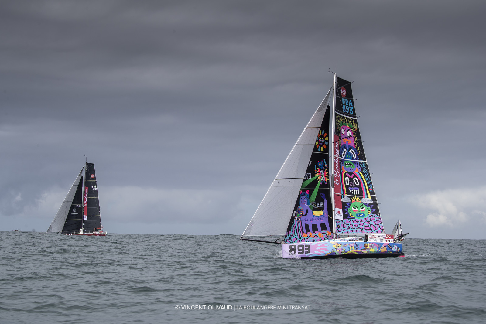 Après avoir quitté les Sables d’Olonne dimanche en début d’après-midi pour une première étape de 1 350 milles à destination de Santa-Cruz de La Palma, les 90 marins de La Boulangère Mini Transat ont, comme prévu, connu une première nuit plutôt tranquille, propulsés par de petits airs sur une mer toutefois formée. Ce mardi, tous poursuivent leur route à petite vitesse, au plus près de l’orthodromie, en direction du way-point positionné au nord de Gijón qu’ils devraient atteindre en milieu de nuit prochaine. L’heure est à la concentration pour faire avancer les bateaux au plus vite et exploiter au mieux les petites variations du vent qui oscille entre 5 et 12 nœuds, et qui devrait même déserter un temps le plan d’eau, en fin de journée, lors d’une transition annoncée un peu délicate.