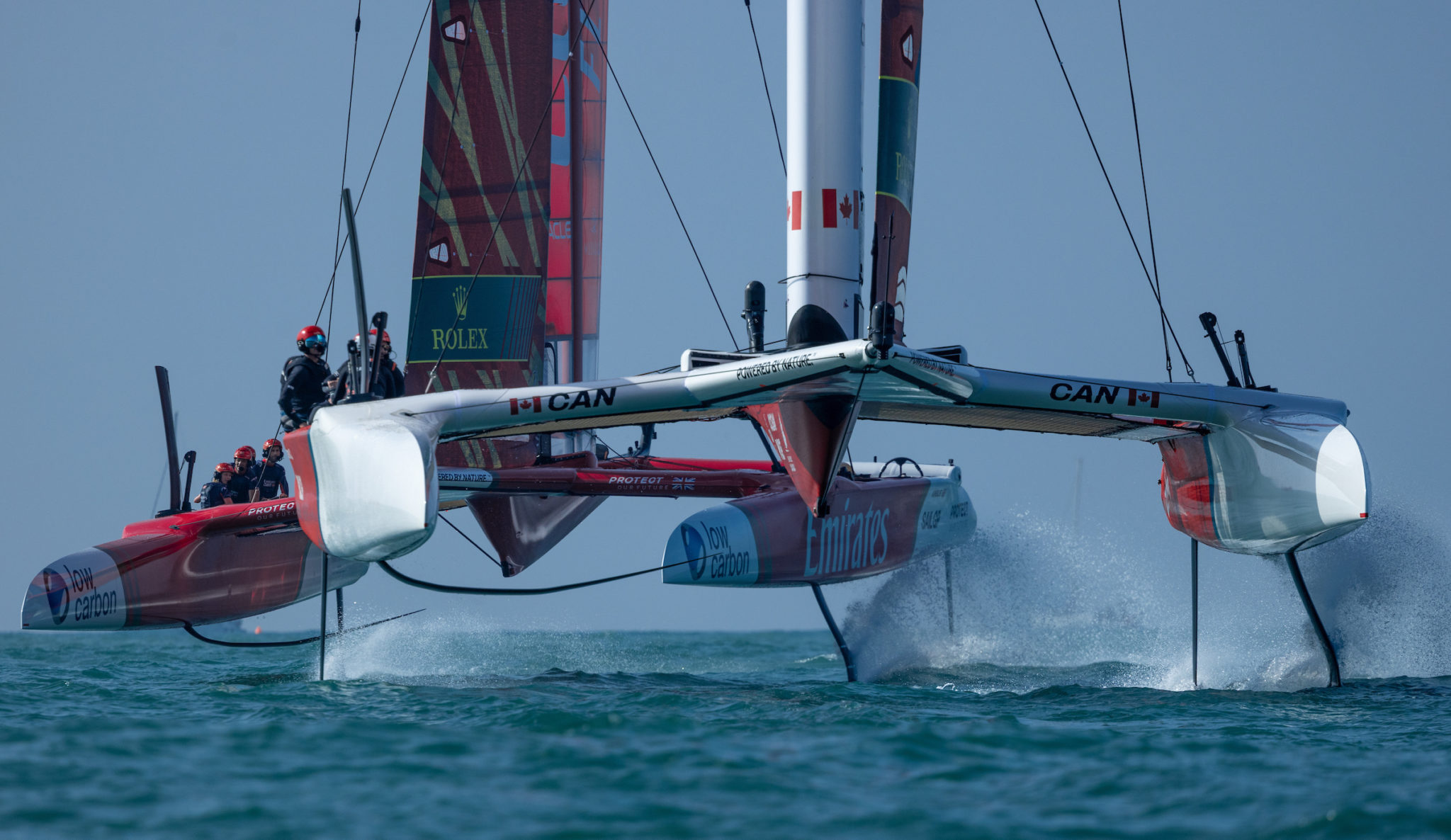 Hier, devant leur public, les Espagnols avaient pris une belle option sur la finale. Sauf que le soir même, ces derniers écopaient d’une pénalité de 4 points sur tapis vert, à cause d’une manœuvre dangereuse au contact des Canadiens. La porte s’ouvrait donc pour de nouveaux prétendants, au cours d’une dernière journée très délicate, disputée dans 5 nœuds de vent, 4 équipiers à bord, et sur des F50 en mode archimédien…