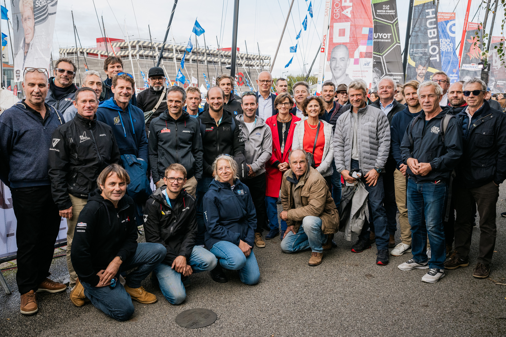 L’ambiance bon enfant qui régnait sur les quais cet après-midi en est sans doute la meilleure preuve. Loïck Peyron, double vainqueur avait fait le déplacement, tout comme son co-équipier de 1999 Franck Proffit, toujours aussi bons conteurs pour dire la dureté de l’édition 1999, celle où disparaissait d’ailleurs Paul Vatine. Présente sur cette Promenade aujourd’hui, Mireille, la femme du navigateur havrais était sensible aux souvenirs de ses anciens concurrents et amis « J’ai toujours suivi la Route du café depuis l’accident de 1999. La date anniversaire du chavirage est le 21 octobre, donc le petit frisson sera pour demain. Aujourd’hui, je suis heureuse d’être là au milieu de tous ces témoins » Egrainer l’histoire de la course avec ses vainqueurs était une belle façon d’ouvrir le village et le public nombreux pouvait se régaler de selfies et autographes. Vainqueurs d’un jour ou abonnés des lauriers en terres de café à l’image de Franck Cammas (4 victoires), Antoine Carpentier, Erwan Le Roux, Charles Caudrelier ou Yann Eliès (3 victoires chacun), tous y allaient de leur petit mot ou taquinaient le concurrent d’hier ou de demain. Yann Eliès demandait même dans un éclat de rire « si la plaque 2023 était déjà prête chez le graveur ?! » Assurément non ! Les jeux sont ouverts et d’ici un mois, quatre paires de patronymes viendront compléter la Promenade des vainqueurs. Que la fête commence !