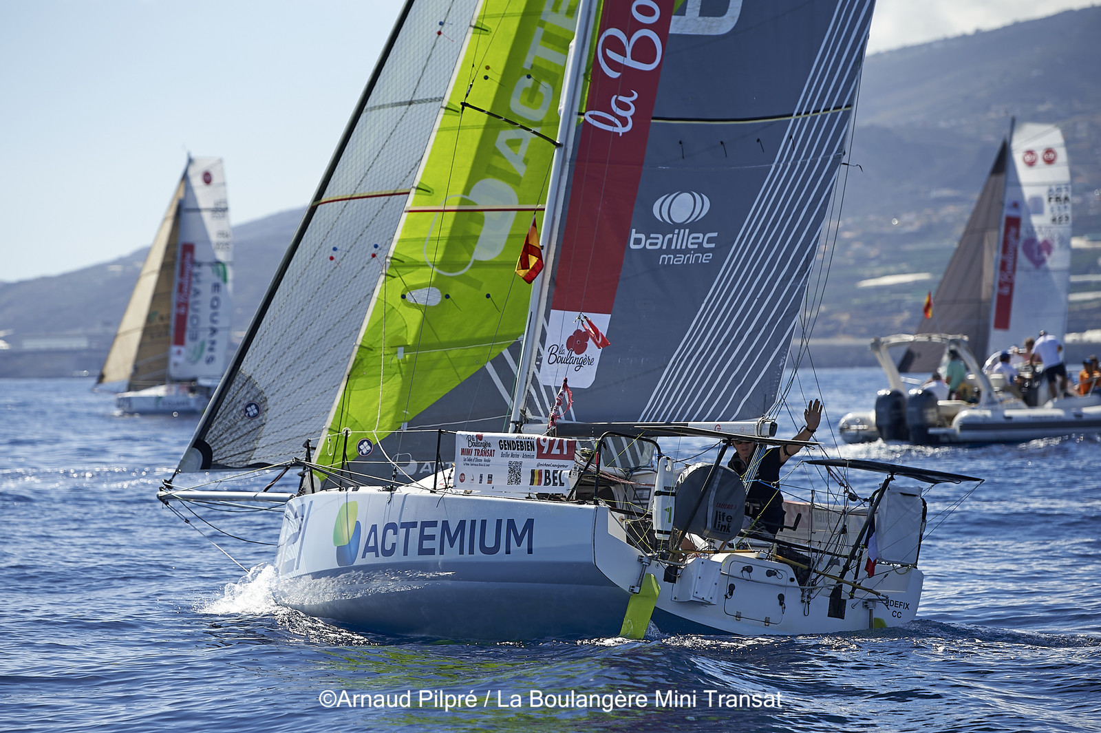 Le coup d’envoi de l’étape 2 – Air Caraïbes de la 24e édition de La Boulangère Mini Transat a été donné ce samedi 28 octobre à 14h20 (heure de Paris). Propulsés par un faible flux d’ouest nord-ouest, les 87 concurrents toujours en lice dans l’épreuve ont alors quitté Santa Cruz de La Palma pour rejoindre Saint-François avec, devant leurs étraves, un morceau de 2 700 milles mais aussi et surtout de nombreuses inconnues. Des inconnues liées à l’exercice en lui-même pour des navigateurs qui, pour la grande majorité, traversent l’Atlantique pour la toute première fois, mais aussi des inconnues liées à la météo, en particulier celle ces premiers milles. De fait, outre les dévents des îles Canariennes, les solitaires vont devoir composer dans de petits airs puis négocier le passage d’un petit front avant d’emprunter l’autoroute des alizés.