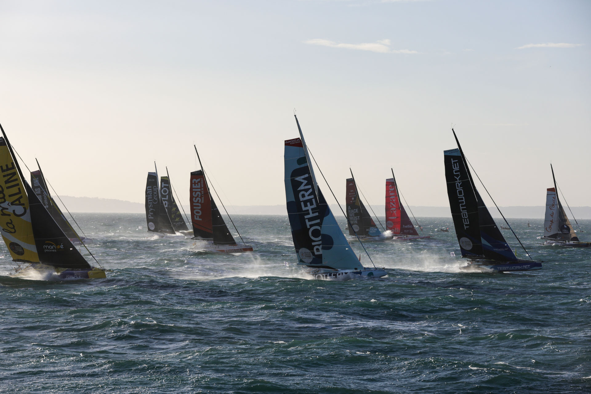 Sortis dès 4 heures du matin du bassin Paul Vatine, les 40 IMOCA se sont élancés à 9h30 en baie de Seine, direction Fort-deFrance, avec 3765 milles à courir. Lumière, vent frais de 25 noeuds, air vif… ce superbe spectacle a permis aux monocoques de 60 pieds de démontrer une fois de plus et en direct, leur extraordinaire potentiel.