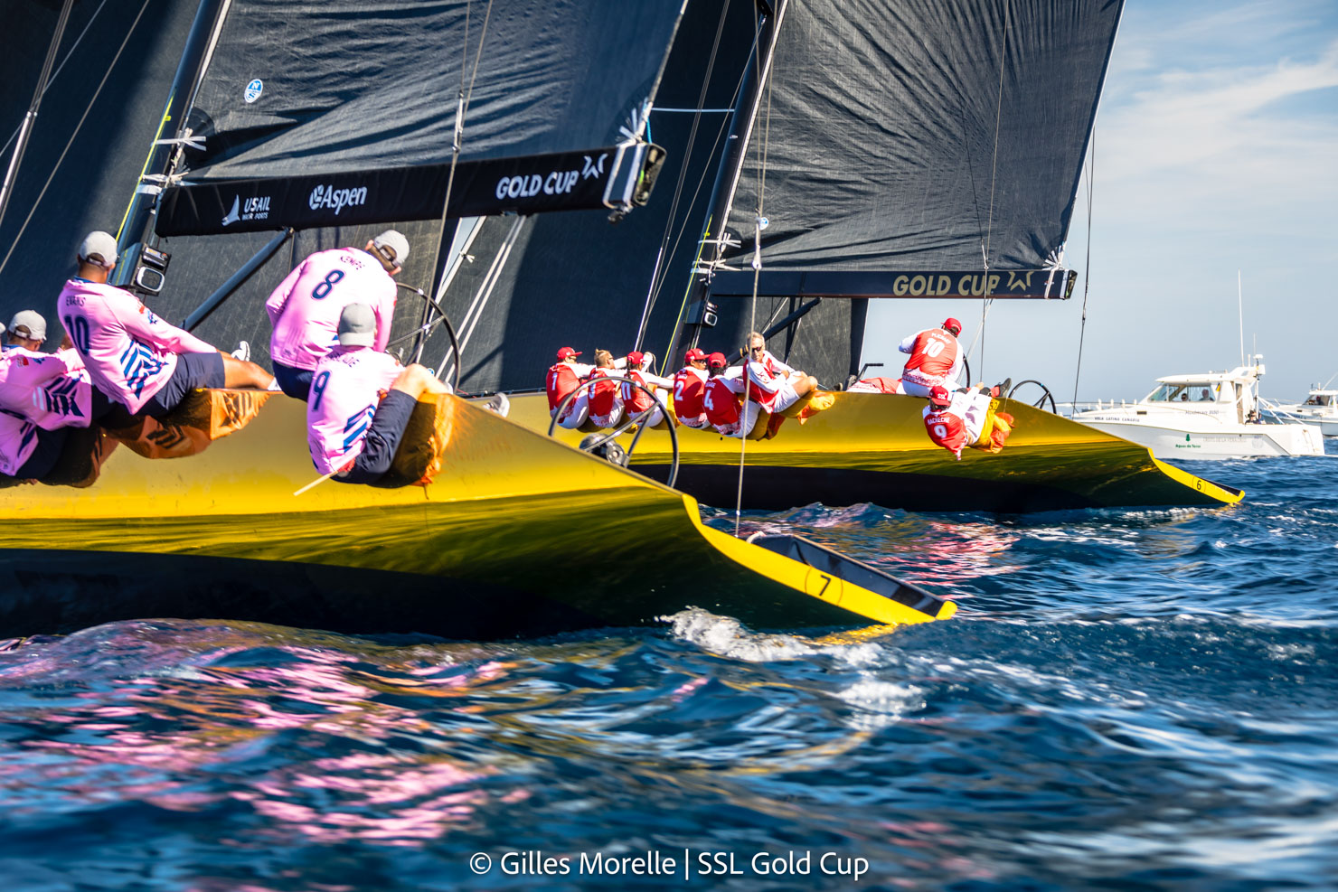 Au deuxième bord de près, c’était essentiellement une course de match entre les Bermudes et Tahiti. Alors qu’ils s’affrontent à la marque au vent, tout reste à jouer, avec seulement 8 secondes d’écart. Mais Team Tahiti s’est détaché dans le dernier bord, franchissant la ligne d’arrivée avec 67 secondes d’avance sur les Bermudes.