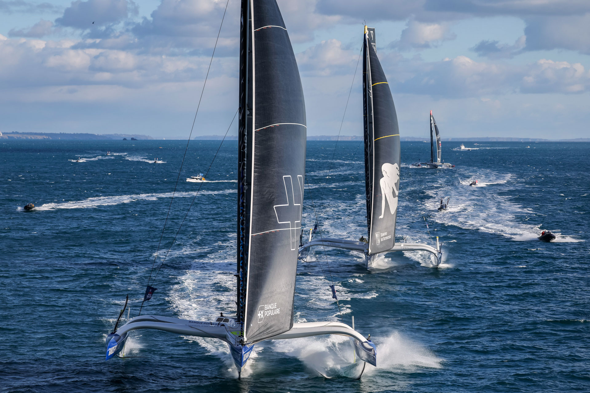 Depuis le petit matin, tous les ingrédients étaient réunis pour une fête à nulle autre pareille avec un public venu en nombre. Ils ont découvert des marins émus, conscients de ce qui les attend puis ce ciel clair et lumineux en arrière-fond de leur « au revoir ». Les conditions clémentes du départ – 10 à 15 nœuds de vent – ont offert un départ à couper le souffle, une mise en jambe parfaite pour trouver les bons réglages et assurer la traversée du golfe de Gascogne. C’est le début d’une nouvelle histoire où les certitudes sont rares, les inconnues nombreuses et les organismes soumis à rude épreuve. Les skippers emportent avec eux le désir d’exploit, la garantie d’un spectacle haletant ainsi que la part d’insouciance et d’admiration qui flottaient parmi la foule massée pour les encourager.