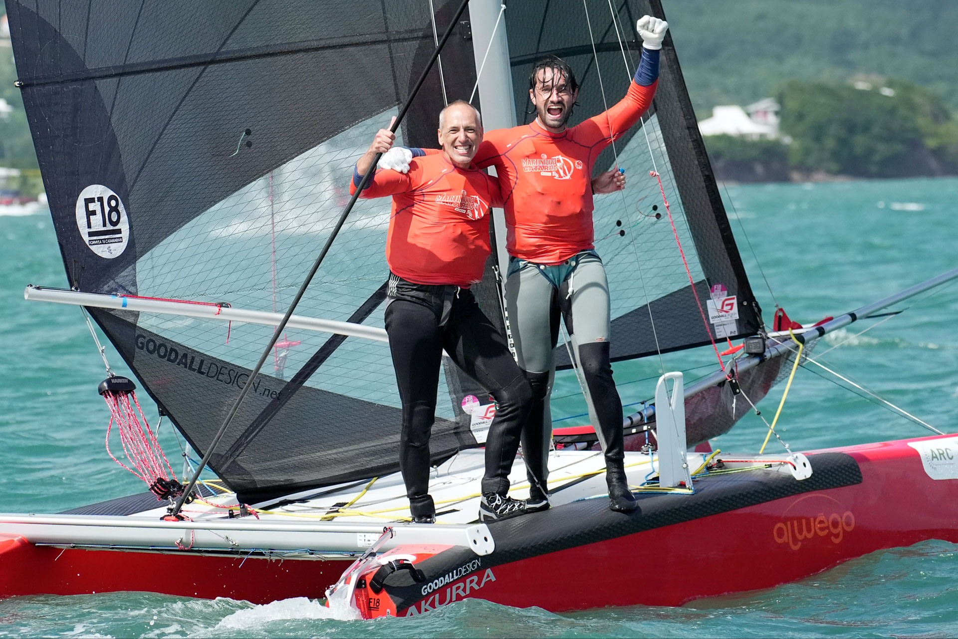 Gurvan Bontemps et Fred Moreau (French Caribbean – Stickerman), deuxièmes de la course au jour, et deuxième du Général F18