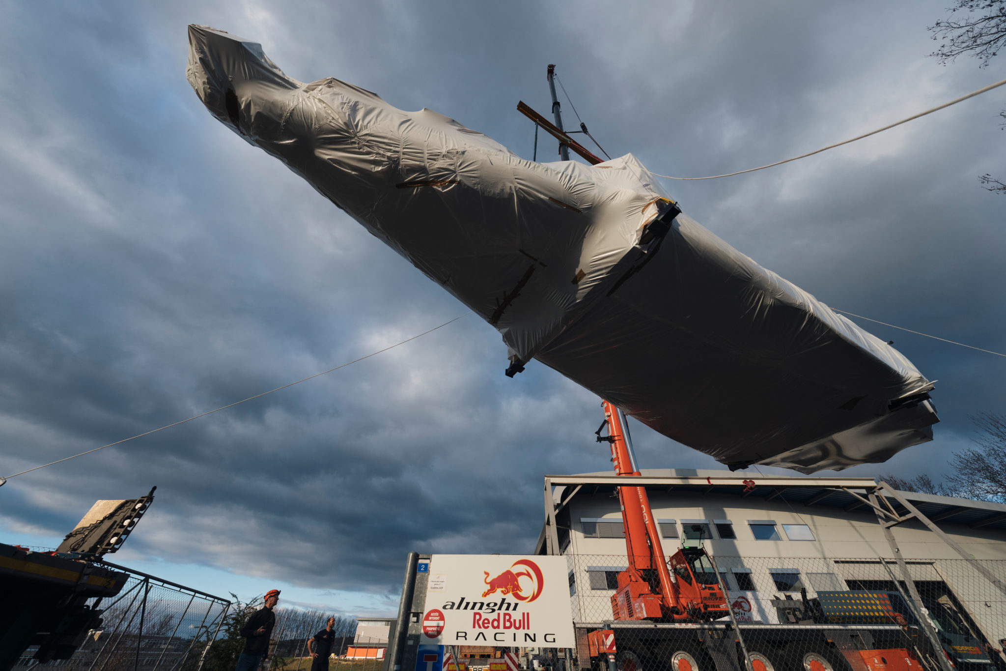 Il n’y a pas eu de bouchons de champagne qui ont sauté, mais des éclats de confettis qui ont scintillé sous les projecteurs. Lundi, les membres de l’équipe de construction du bateau Alinghi Red Bull Racing à Ecublens ont fièrement signé l’emballage extérieur de BoatOne, alors qu’il était préparé pour le transport d’une semaine jusqu’à Barcelone.