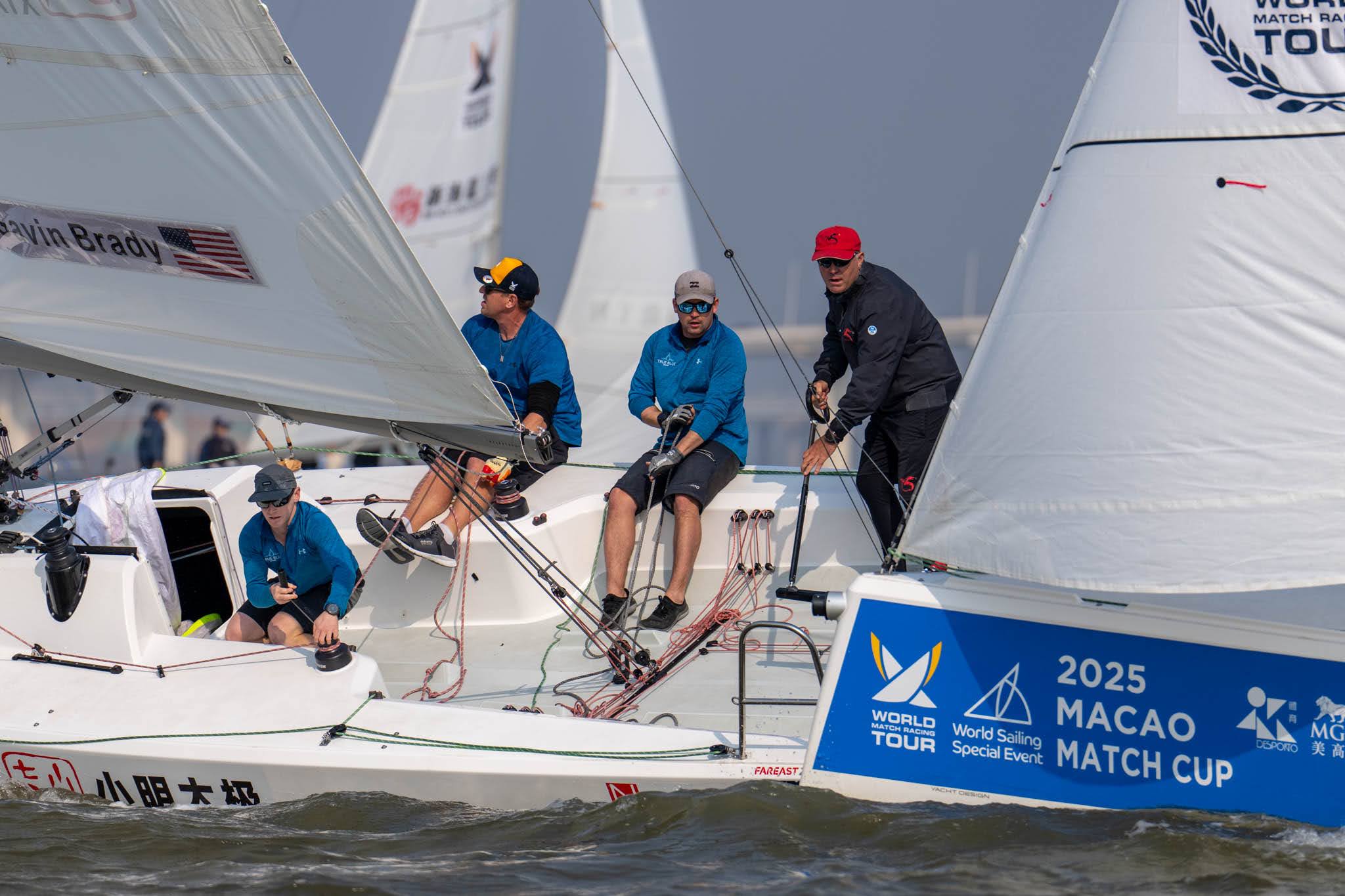 Les prévisions annonçaient une brise plus régulière pour la deuxième journée de la Macao Match Cup 2025. Les expérimentés Ian Williams (GBR), Gavin Brady (USA) et le Néo-Zélandais Nick Egnot-Johnson continuent de dominer la phase de qualification du round-robin. Williams et Brady restent invaincus avec huit victoires en huit courses, Egnot-Johnson avec sept victoires et l’Italien Rocco Attili en quatrième position avec cinq victoires.